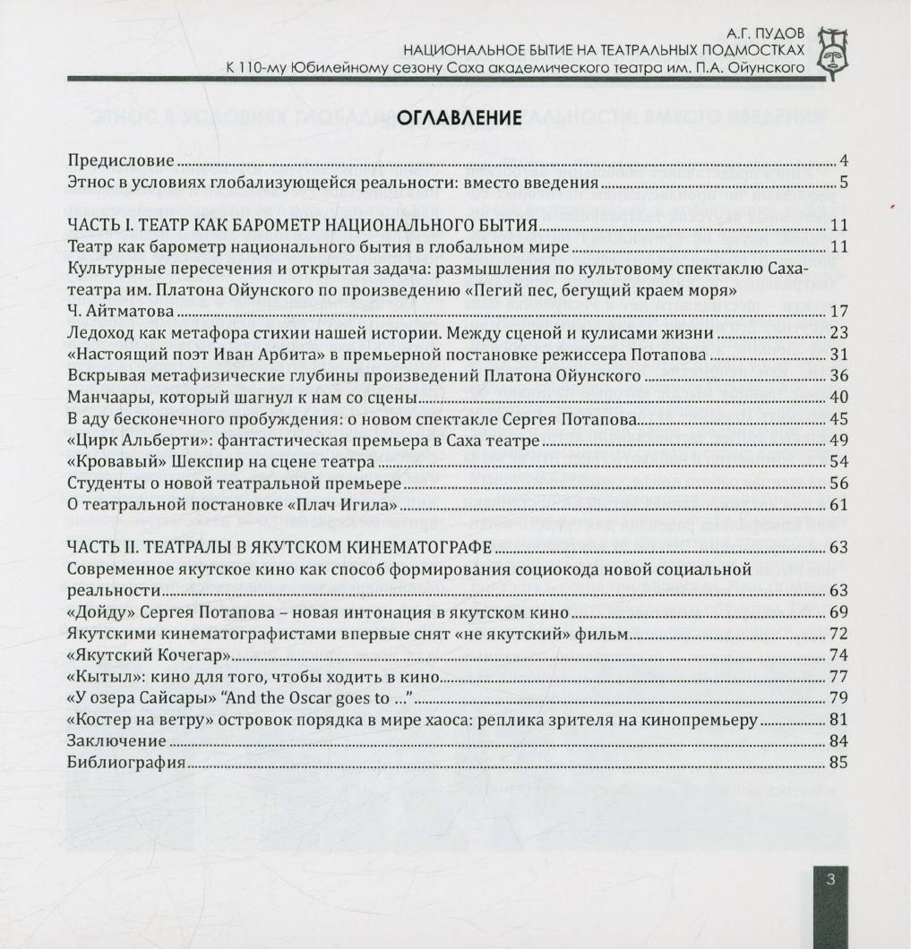 Национальное бытие на театральных подмостках : к 110-му Юбилейному сезону Саха академического театра им. П. А. Ойунского / А. Г. Пудов. - Якутск : СМИК, 2016. - 88 с.