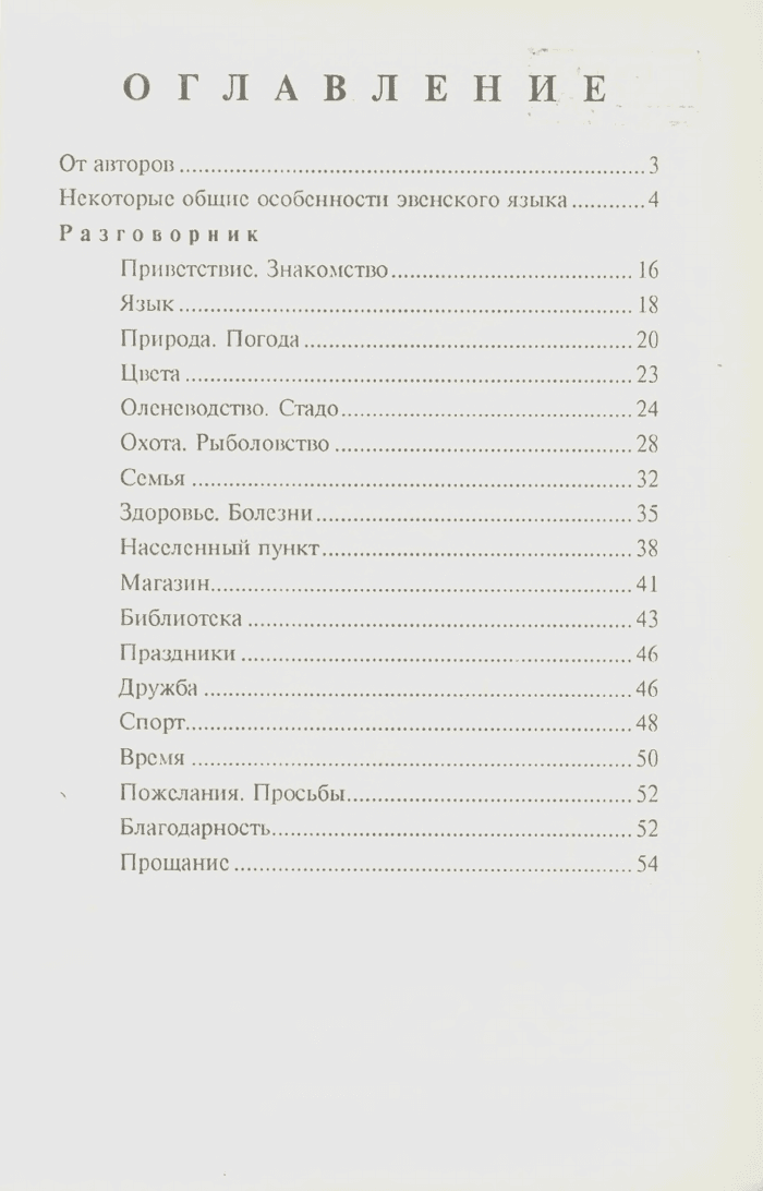Основное содержание пособия - разговорник с тематическими словарями. В него включены также краткие данные об особенностях эвенского языка, грамматики и диалектологии