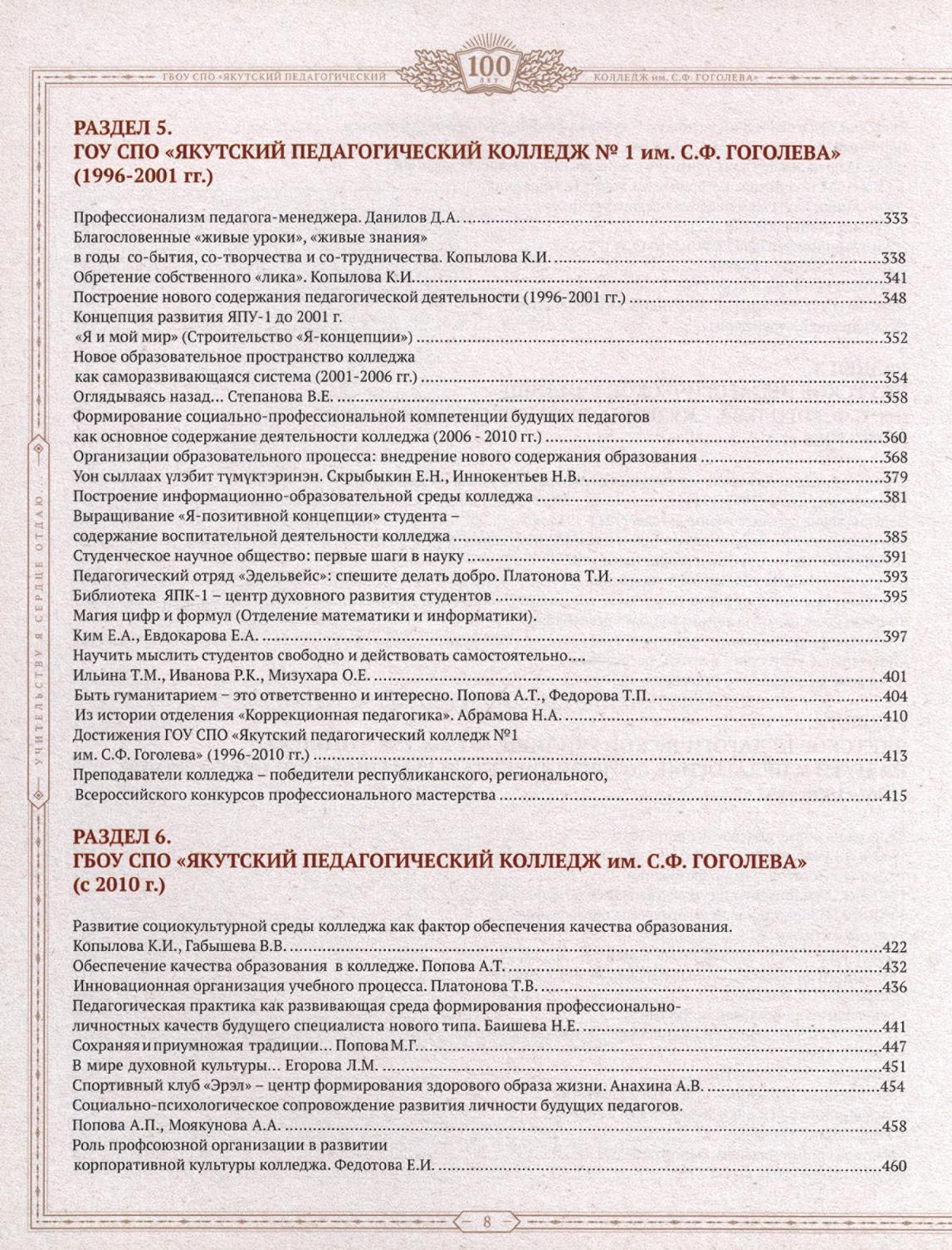 Учительству я сердце отдаю... : к 100-летию Якутского педагогического колледжа им. С. Ф. Гоголева / ГБОУ СПО "Якут. пед. колледж им. С. Ф. Гоголева" ; [авт.-сост.: К. И. Копылова, В. В. Габышева, Н. Е. Баишева и др. ; отв. ред. К. И. Копылова ; науч. ред. С. М. Петрова, д.п.н., проф.]. - Якутск : Салама, 2014. - 607 с.