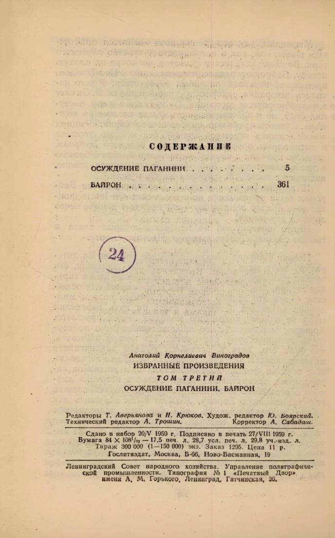 Избранные произведения / [вступительная статья О. Бабаяна] / А. К. Виноградов. - Москва : Гослитиздат, 1960. - 21 см. Т. 3: Осуждение Паганини ; Байрон : роман. - 1960. - 560 с. - 300000 экз.