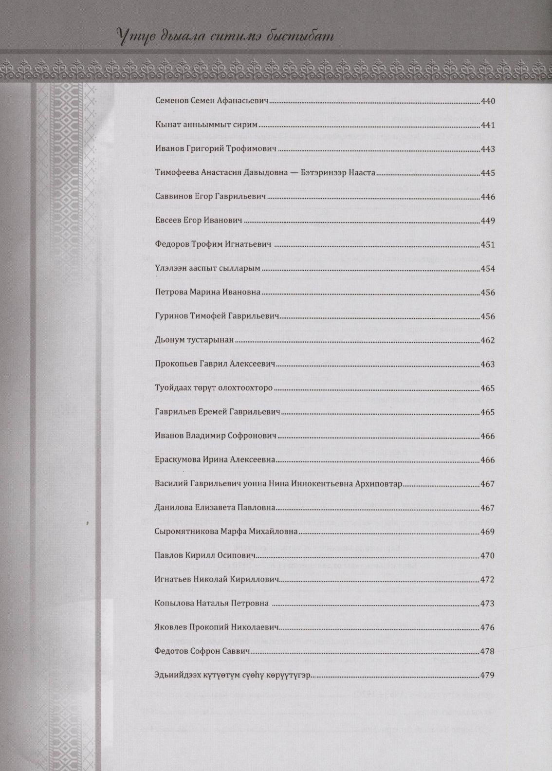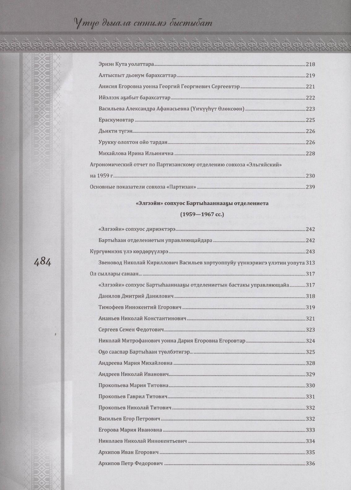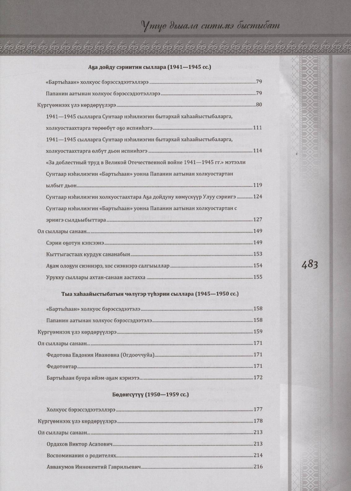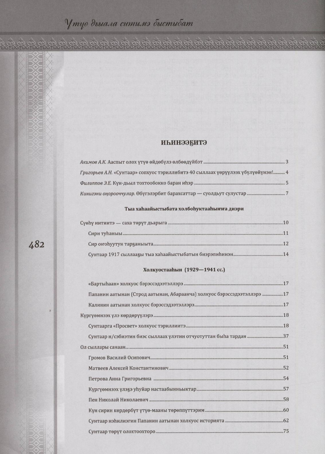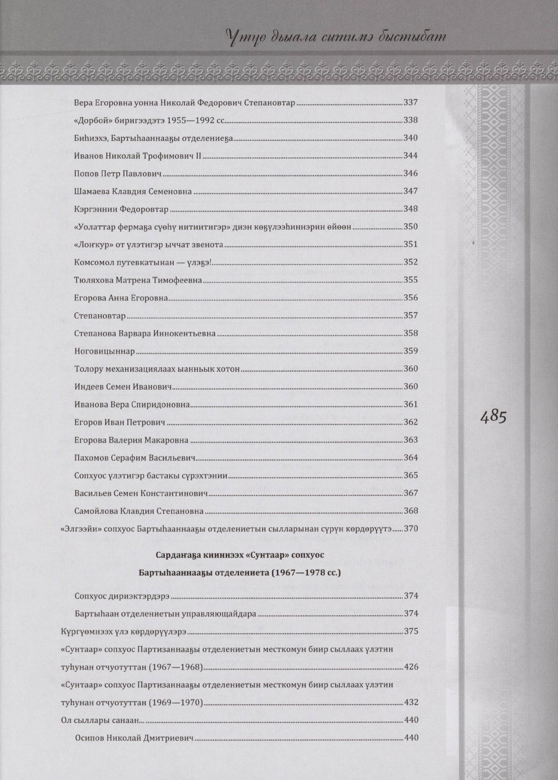 Үтүө дьыала ситимэ быстыбат : Сунтаар нэһилиэгэр тыа хаһаайыстыбатын сайдыытын кэрчик кэмнэрэ / "Сунтаар нэһилиэгэ" муницип. тэриллии, "Сунтаар улууһа (оройуона)" муницип. оройуон муницип. архыыба ; [хомуйан оҥордулар: А. Е. Яковлев, А. И. Васильев, З. В. Иванова, А. К. Васильев]. - Дьокуускай : Чопчу, 2018. - 30 см. Издание посвящено истории развития сельского хозяйства и труженикам села в Сунтарском наслеге Республики Саха (Якутия). Т. 1. - 485, [1] с.