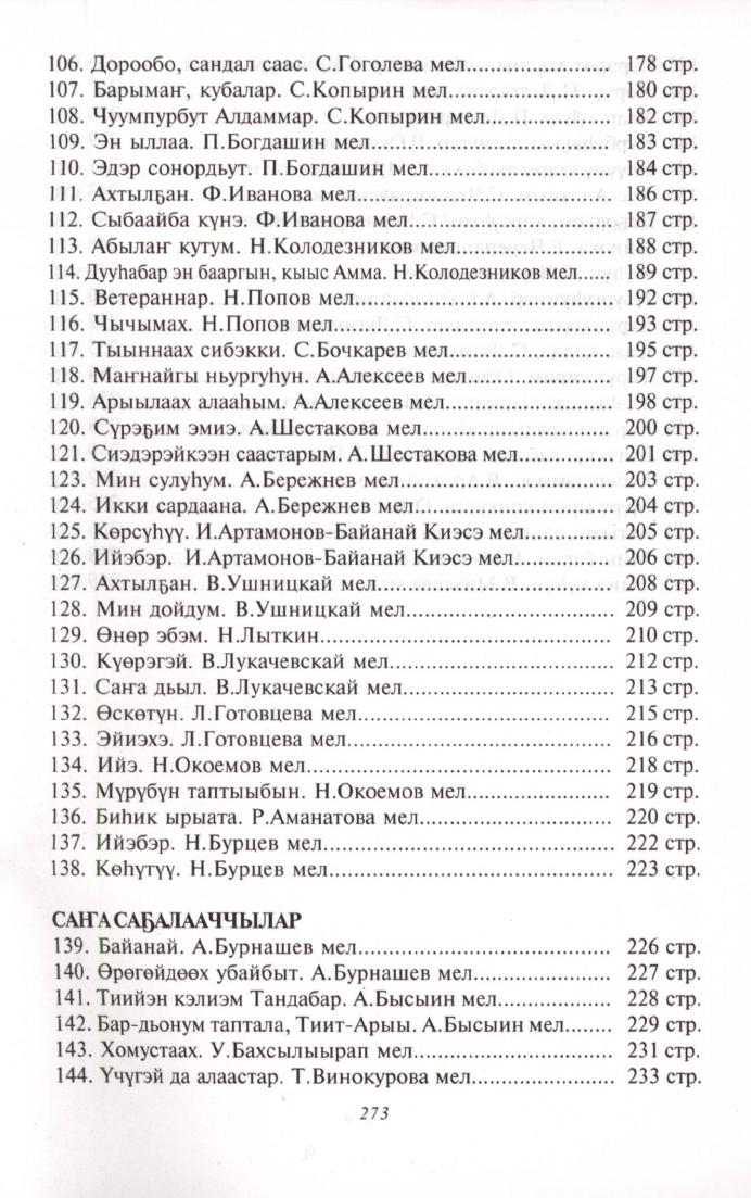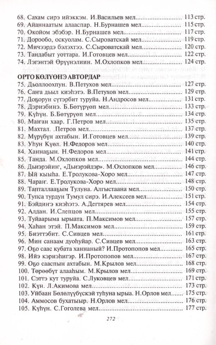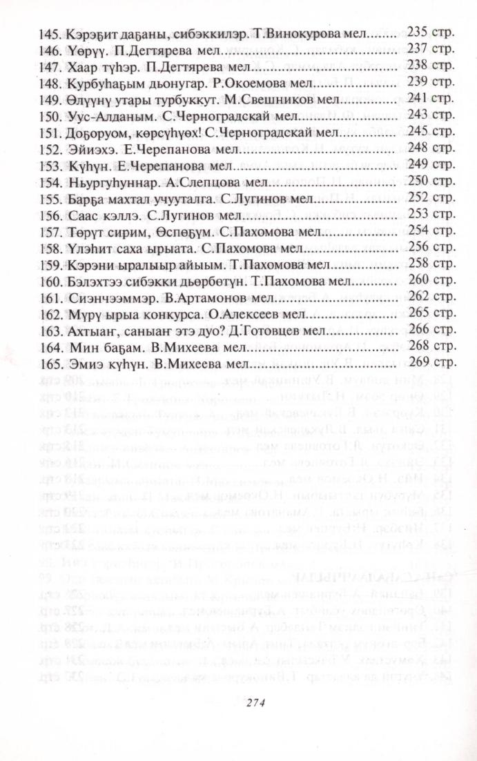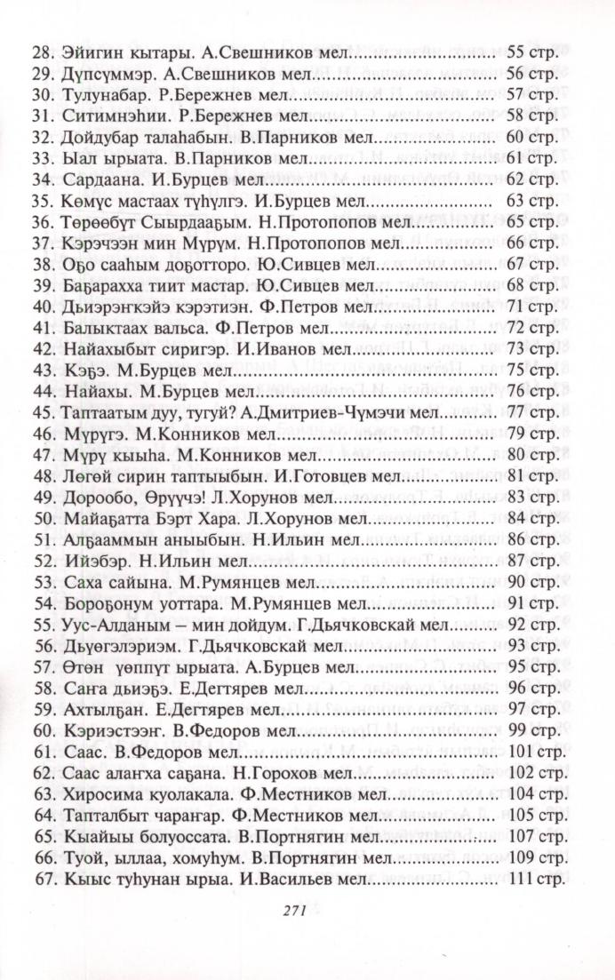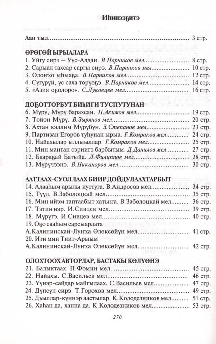 Уус-Алдан улууһун мелодистара / [хомуйан оҥордулар.: В. С. Парников, В. Н. Петухов]. - Бороҕон : Мүрү саһарҕата, 2012. - 269 с.