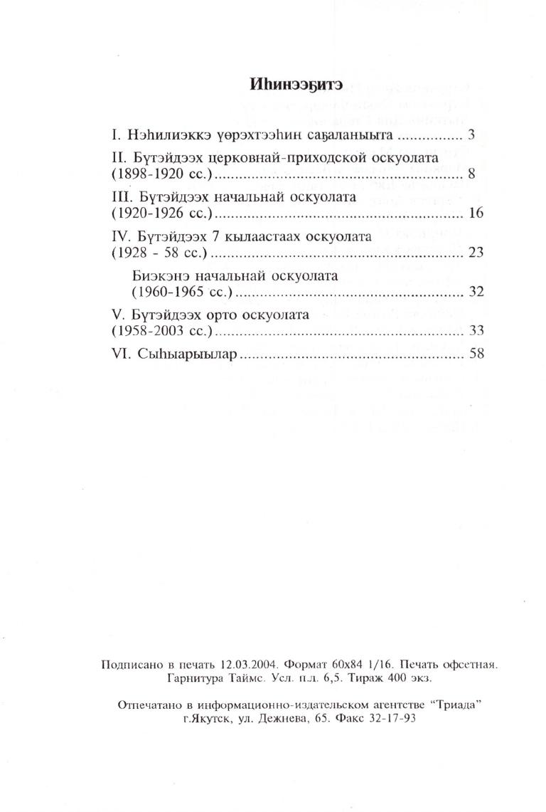 Бүтэйдээх орто оскуолата / [М. Е. Капитонов, К. К. Родионов ; редактордар: Аргунов А. Н. уо.д.а.]. - Дьокуускай, 2004. - 102, [2] с.