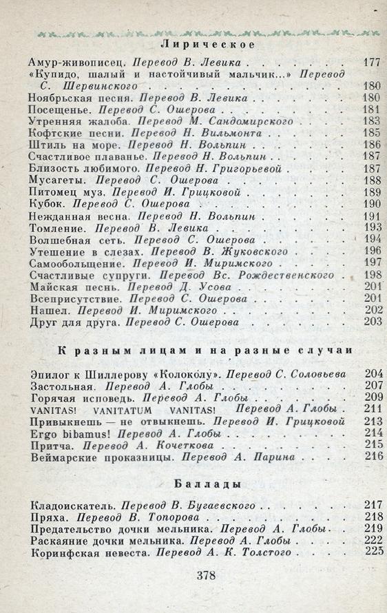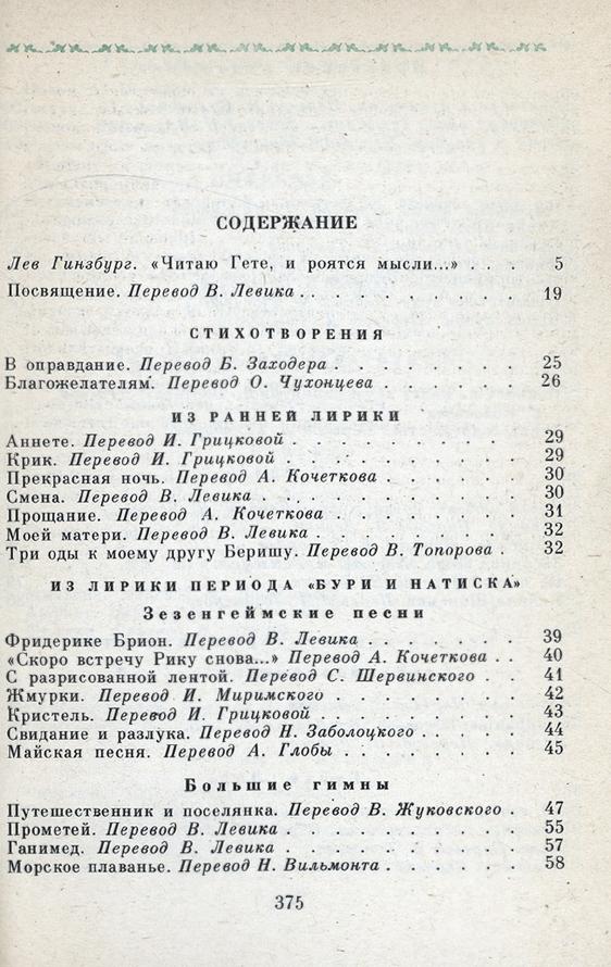 Стихотворения : перевод с немецкого / И.-В. Гете ; вступительная статья Л. Гинзбурга ; примечания А. Аникста ; художник А. Лепятский. - Москва : Художественная литература, 1979. - 382 с. : ил. ).