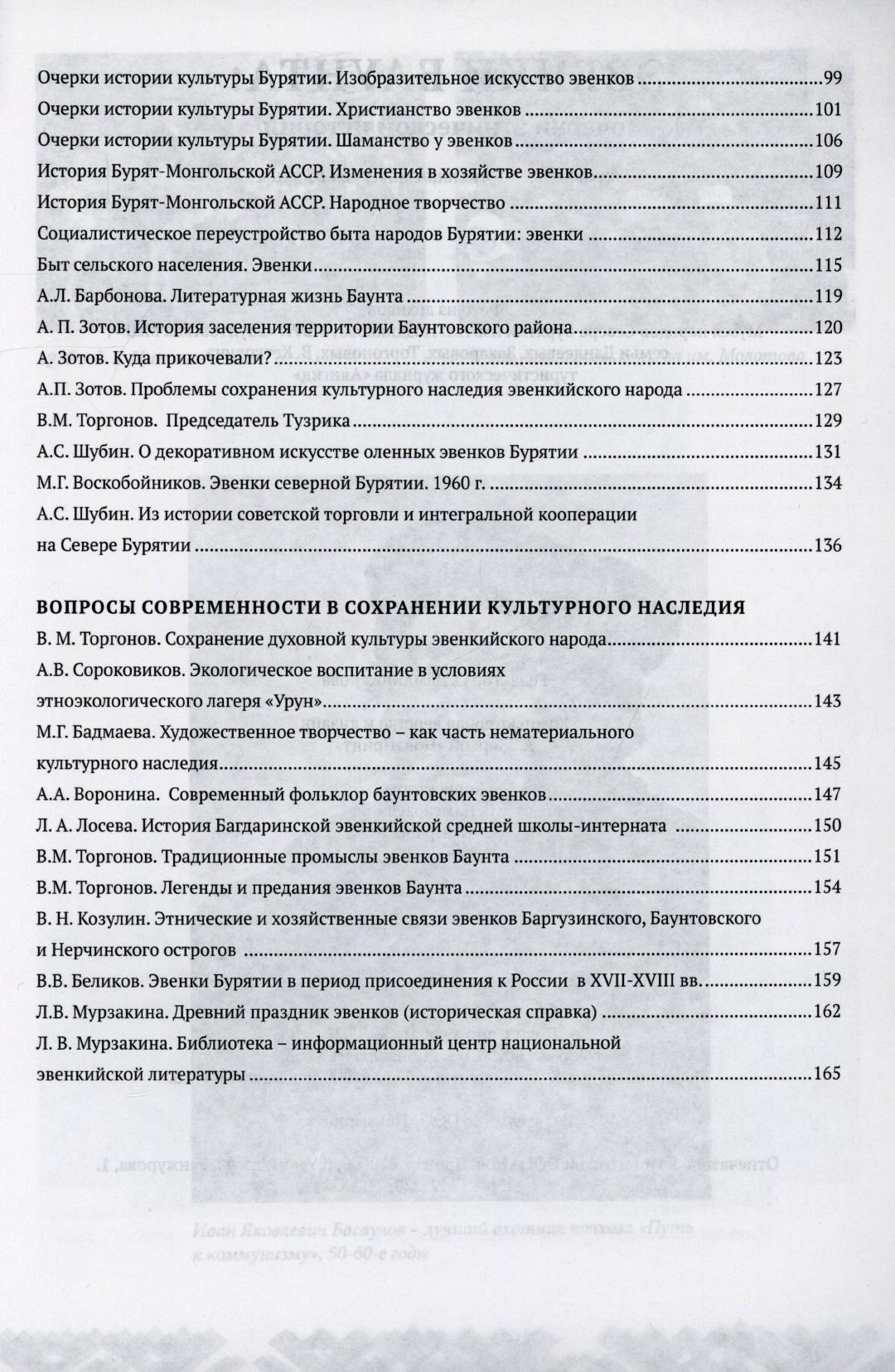 Эвенки Баунта : очерки этнической истории : документально-публицистский сборник / редакционная коллегия: Л. Д. Цыбикова, С. Б. Доржиева, О. Н. Морозов ; ответственный за выпуск С. Б. Доржиева ; составитель Л. В. Мурзакина. - Улан-Удэ : НоваПринт, 2015. - 173, [2] с., [8] л. ил., цв. ил., портр.