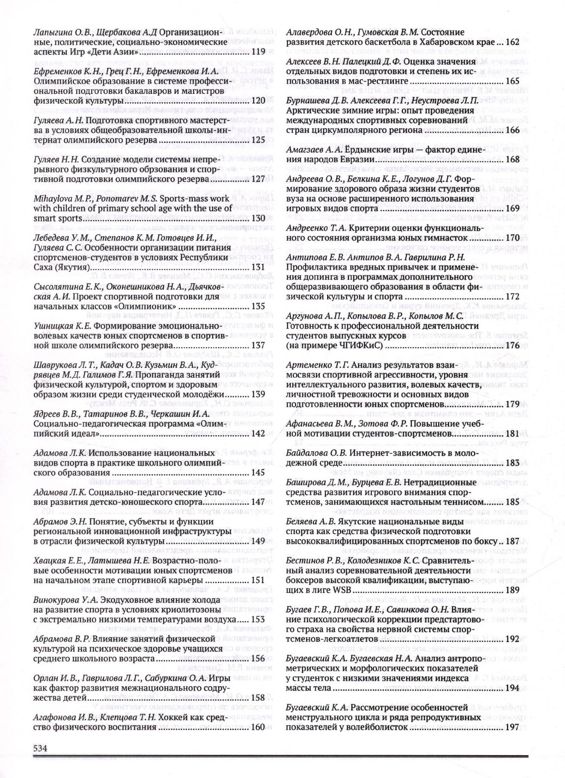 Международные спортивные игры "Дети Азии" - фактор продвижения идей Олимпизма и подготовки спортивного резерва = International sports games "Children of Asia" as a factor of promotion the ideas of Olympism and preparation of the sports reserve : материалы международной научной конференции, посвященной 20-летию I Международных спортивных игр "Дети Азии" и 120-летию Олимпийского движения в стране / [сост.: к.п.н., проф. И. И. Готовцев, к.п.н., проф. С. С. Гуляева, к.социол.н., доц. А. Е. Местникова и др. ; под общ. ред. д.п.н., проф. М. Д. Гуляева]. - Якутск : РИО медиа-холдинга, 2016. - 543 с.