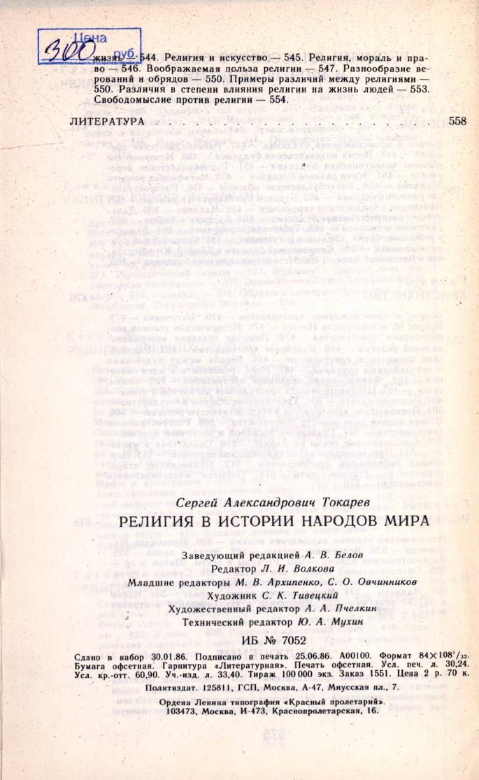 Религия в истории народов мира / С. А. Токарев. - 4 - е изд., доп. и перераб. - Москва : Политиздат, 1986. - 575, [1] с.