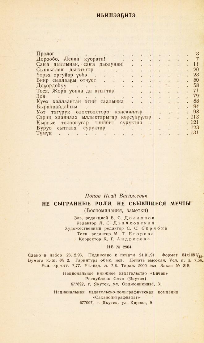 Оонньоммотох оруоллар, эстибит эрэллэр : (ахтыылар, бэлиэтээһиннэр) / Исай Попов. - Дьокуускай : Бичик, 1994. - 142, [4] с.