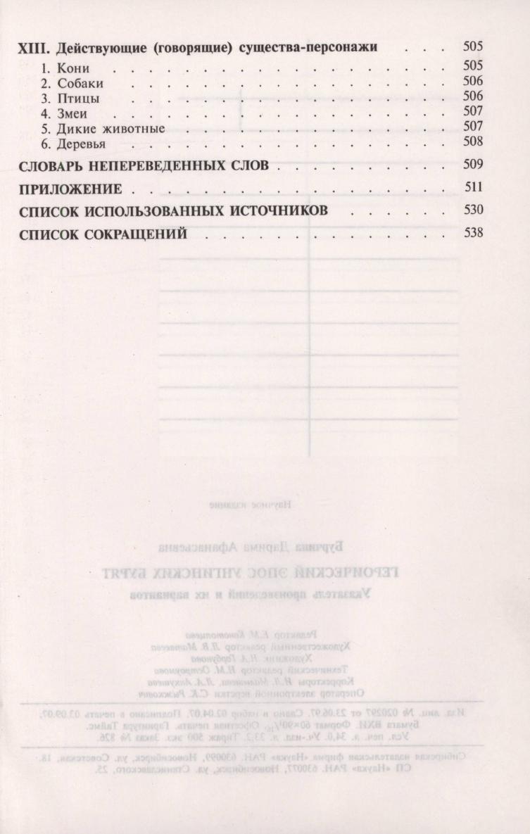 Героический эпос унгинских бурят : указатель произведений и их вариантов / Д. А. Бурчина ; ответственный редактор Ю. И. Смирнов ; Российская академия наук, Сибирское отделение, Институт монголоведения, буддологии и тибетологии. - Новосибирск : Наука, 2007. - 542, [1] с.