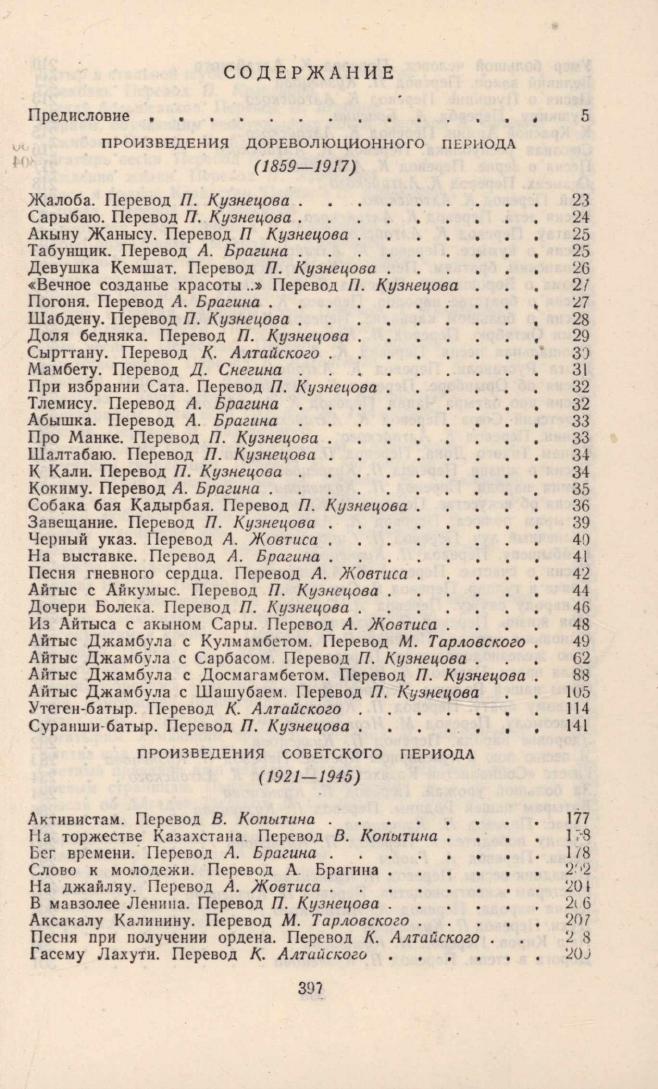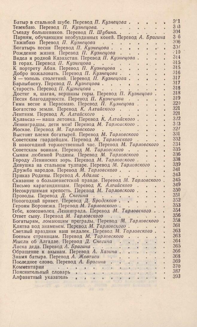 Избранные произведения : перевод с казахского / Джамбул Джабаев ; составители М. Гумарова, Н. Нурмагамбетова, Т. Сыдыков ; редакционная коллегия: М. Ауэзов, Н. Смирнова, М. Сильченко ; [предисловие Н. Смирновой, М. Сильченко] ; АН КАЗССР, Институт литературы и искусства им. М. О. Ауэзова. - Алма-Ата : Жазушы, 1980. - 398, [1] с.