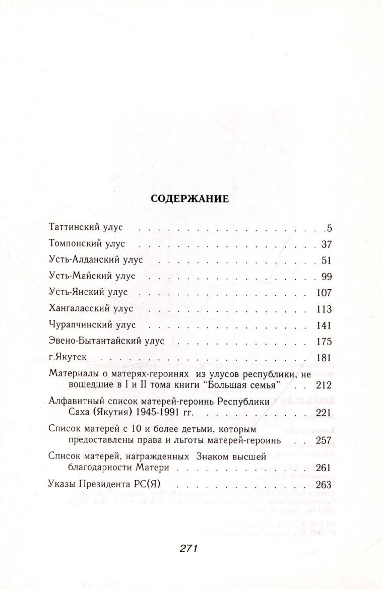 Большая семья : матери-героини Республика Саха (Якутия). - Якутск : Комитет по делам семьи и детства при Президенте РС(Я), 1996-1998. - . Кн. 3. - 1998. - 271 с. : ил., табл.
