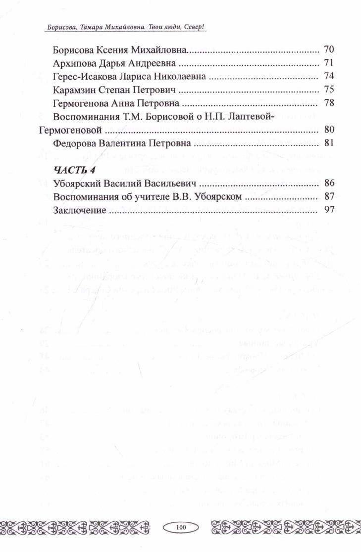 Твои люди, Север! / Т. М. Борисова. - Воронеж : Ковчег, 2018. - 118 с. : ил., портр. ).