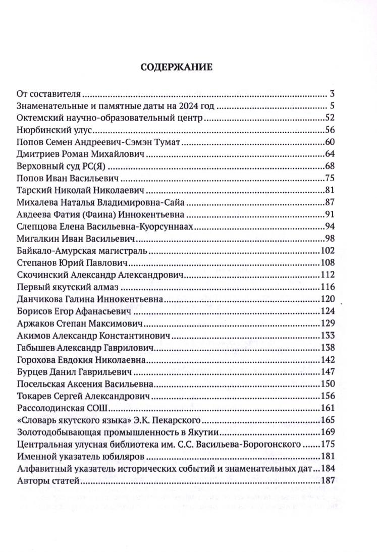 Якутия - 2024 : календарь знаменательных и памятных дат / Национальная библиотека Республики Саха (Якутия), Отдел региональной библиографии ; составитель И. И. Татаринов ; научный консультант Е. П. Антонов ; редактор Э. М. Максимова ; ответственный за выпуск С. В. Максимова. - Якутск : Айар, 2024. - 187, [2] с.