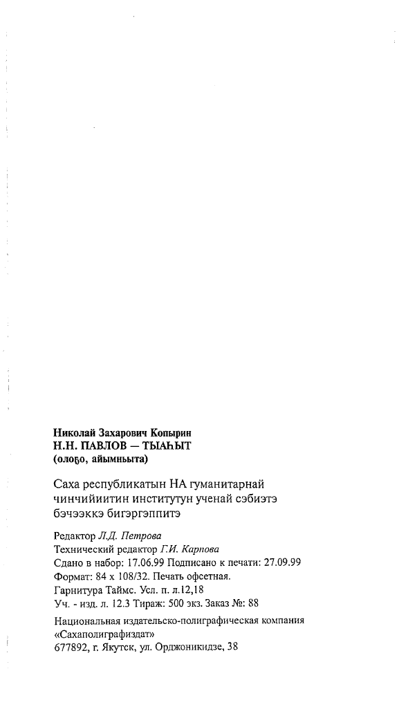 Копырин ; Саха Респ. наукаларын акад. Гуманитар.