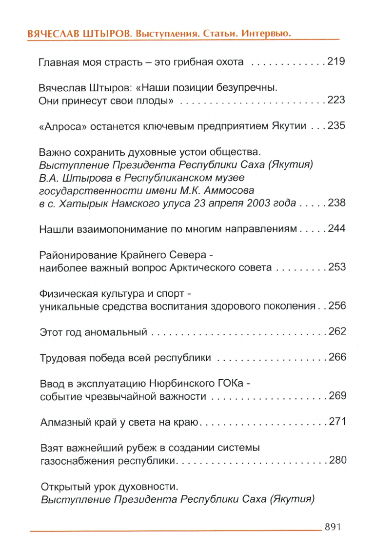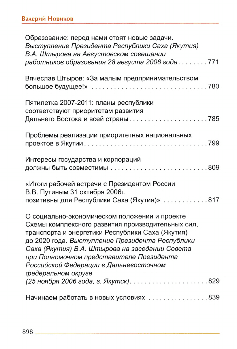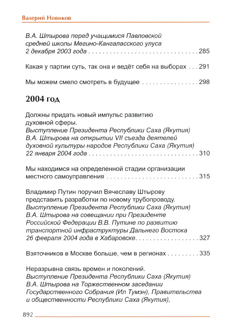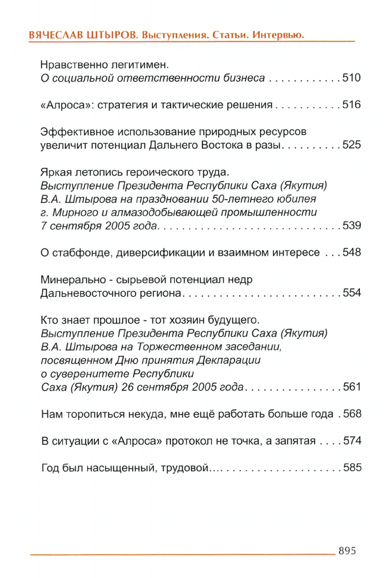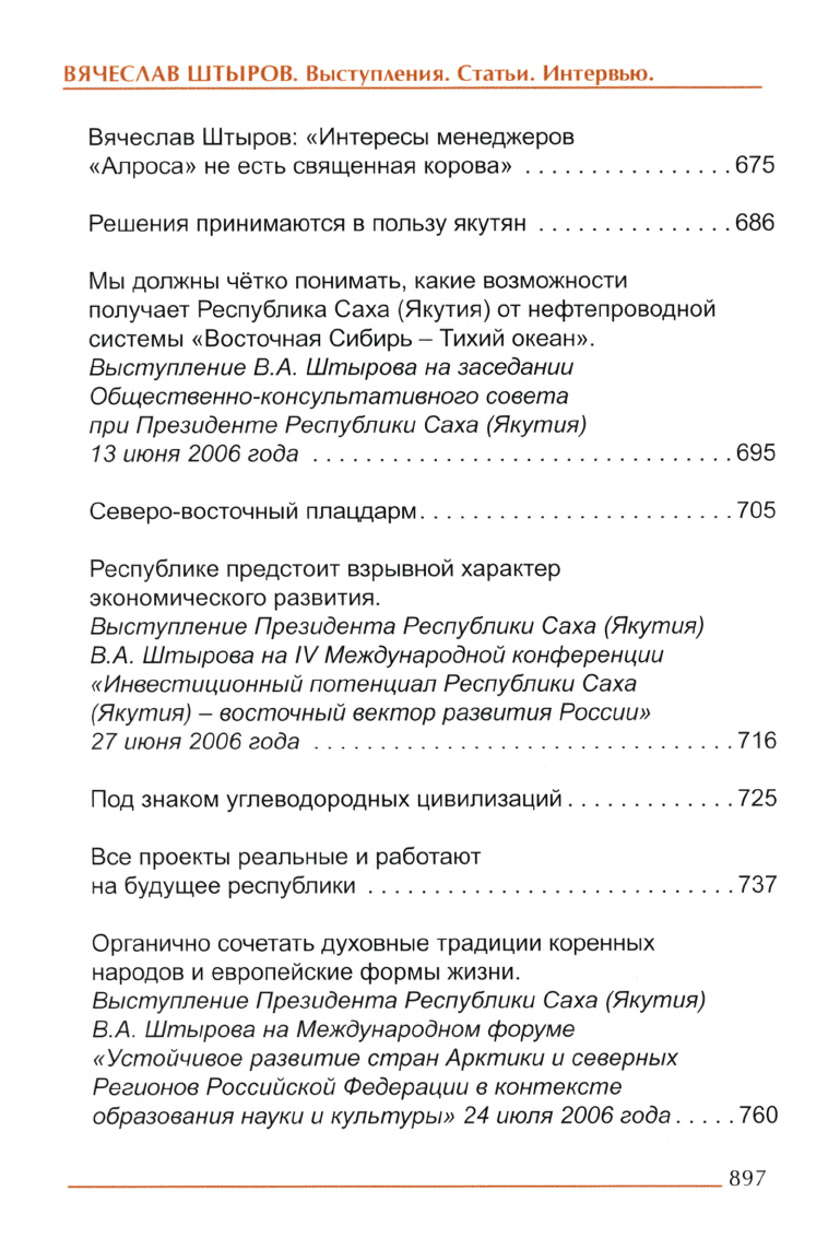 Книга представляет собой сборник статей, выступлений и интервью за период 2002-2007 гг. Президента Республики Саха (Якутия) В. А. Штырова. Материалы книги дают объемное представление о характере общественно-политических и социально-экономических проблем, путях их решения и динамике развития Республики Саха (Якутия) в начале первого десятилетия XXI века - одного из самых плодотворных периодов новейшей истории Якутии