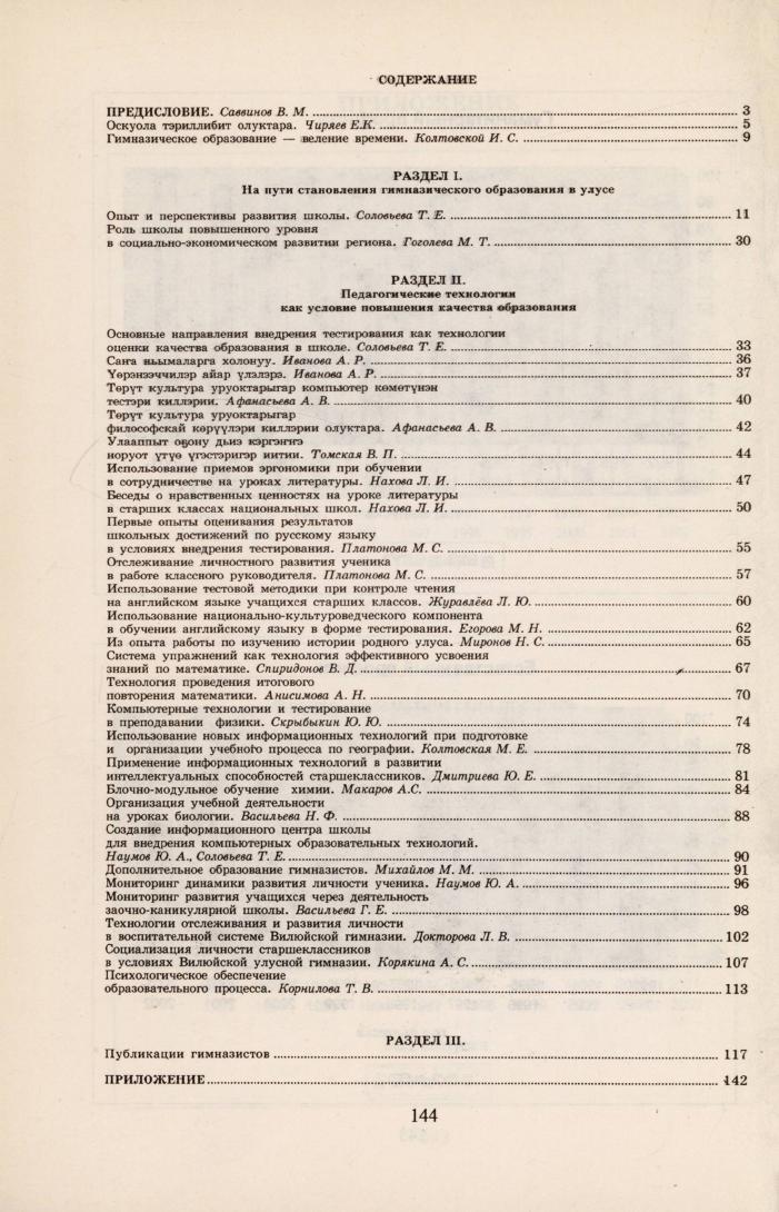 Вилюйская гимназия : опыт и перспективы развития : [сборник статей] / Вилюйское улусное управление образования ; составитель Т. Е. Соловьева. - Вилюйск, 2003. - 144 с.