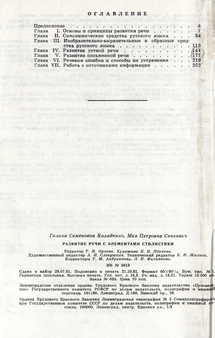 Развитие речи с элементами стилистики : учебное пособие для учащихся национальных педагогических училищ РСФСР / Г. С. Коляденко, М. П. Сенкевич. - Ленинград : Просвещение, 1981. - 264 с.