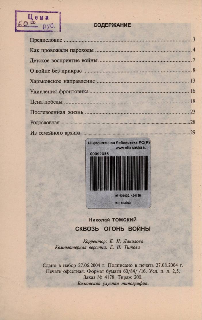 Сквозь огонь войны / Николай Томский. - Вилюйск : Вилюйская улусная типография, 2004. - 37, [3] с.