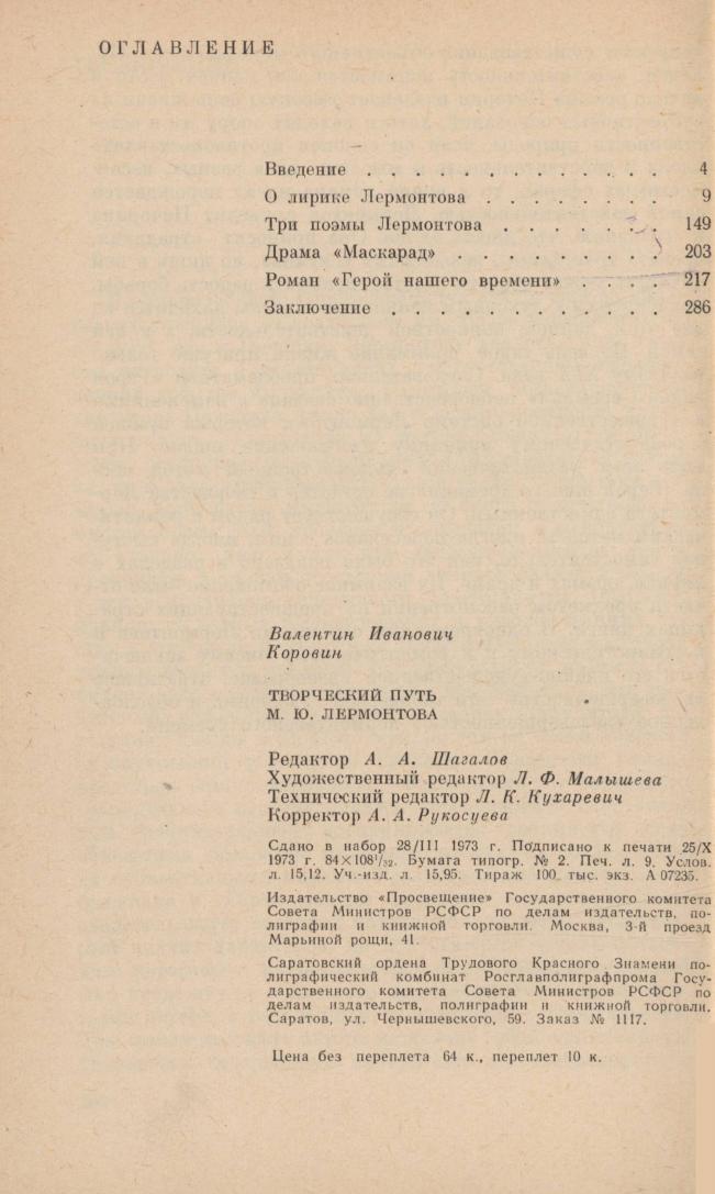 Творческий путь М. Ю. Лермонтова / В. И. Коровин. - Москва : Просвещение, 1973. - 287, [1] с.