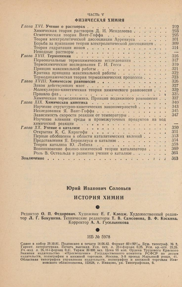 История химии : развитие химии с древнейших времен до конца XIX века : пособие для учителей / Ю. И. Соловьев. - 2-е изд. , перераб. - Москва : Просвещение, 1983. - 367, [1] с.