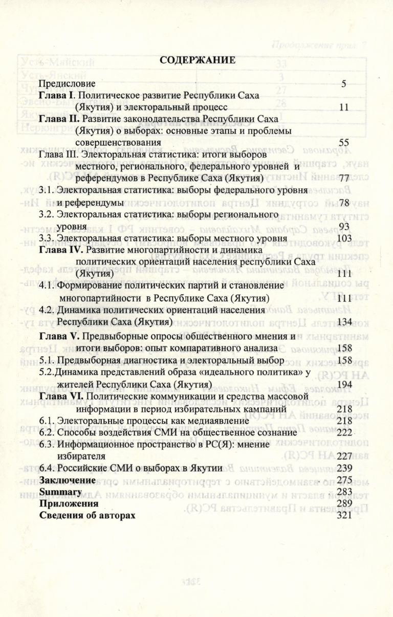 Опыт и практика демократических выборов в Республике Саха (Якутия). 1990-2002 гг. = Experience and practice of democratic elections in the Sakha Republic (Yakutia) / [В. Б. Игнатьева и др.]; Акад. наук Респ. Саха (Якутия), Ин-т гуманитар. исслед. - Якутск: Изд-во СО РАН. Якут. фил., 2003. - 321,[1] с.