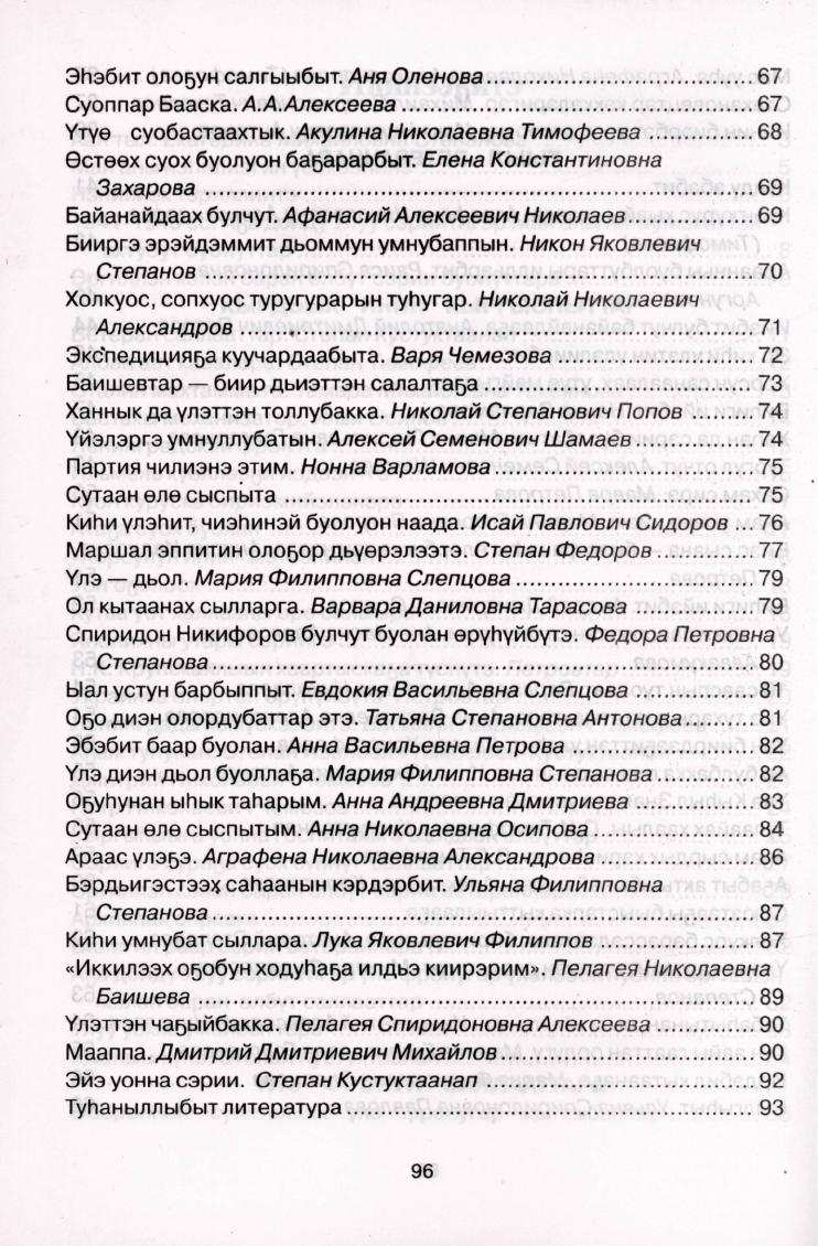 Кырдьык иһин кыргыспыттар, кыайыыга үлэнэн кыттыспыттар : [Маҥаны нэһилиэгэ сэрии сылларыгар / авторскай бөлөх: С. И. Тимофеев (салайааччы) уо. д. а. ; В. И. Алексеев редактор, бэчээккэ бэлэмнээтэ] ; Горнай улууһун Маҥаны нэһилиэгин дьаһалтата. - Бэрдьигэстээх : "Үлэ күүһэ" хаһыат ред., 2005. - 96 с.