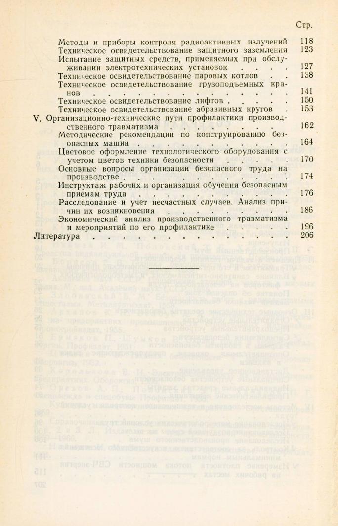 В книге приводится классификация производственных факторов, опасных для жизни и здоровья человека, освещаются основные вопросы техники и организации безопасного труда, рассматриваются методы исследования условий труда на промышленных предприятиях. В качестве краткого пособия книга предназначается для слушателей курсов повышения квалификации технических инспекторов профсоюзов и инженерно-технических работников промышленных предприятий, организуемых научно-исследовательскими институтами охраны труда ВЦСПС. Книга будет полезной и для профсоюзного актива по охране труда