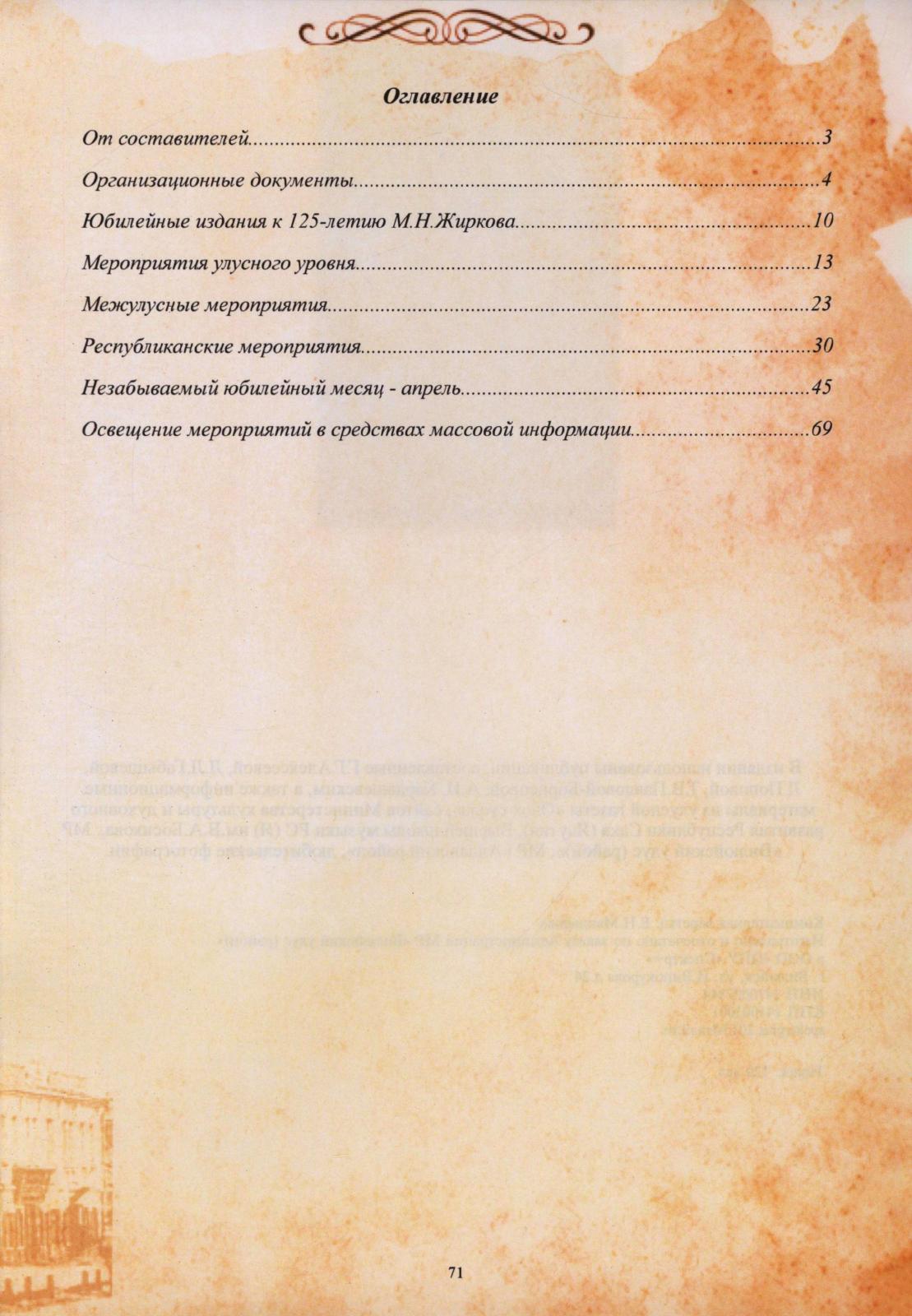 2017 год - Год Марка Николаевича Жиркова в Вилюйском улусе : (альбом-хроника о мероприятиях 125-летнего юбилея со дня рождения Марка Николаевича Жиркова, первого якутского композитора, выдающегося деятеля музыкальной культуры, основоположника профессионального музыкального искусства Якутии, государственного и общественного деятеля) / Администрация МР "Вилюйский улус (р-н)", Администрация МО "Город Вилюйск", Управление культуры, молодежи и семейной политики Вилюйского улуса, Вилюйский Центр досуга "Алгыс" ; [составители: В. Ф. Тихонова, Н. Н. Иванова]. - Вилюйск : ЦПУ "Спектр+", 2017. - 71 с.
