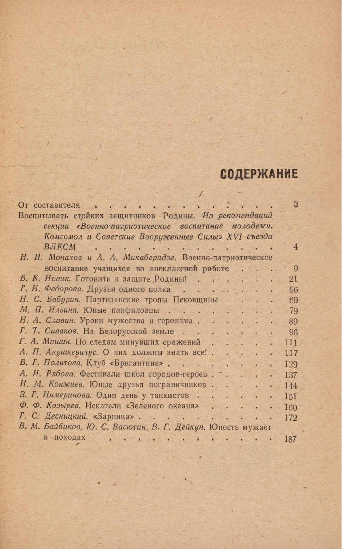 Ребята растут патриотами : из опыта военно-патриотического воспитания школьников : [сборник статей] / составитель Ф. Ф. Козырев ; под редакцией Н. И. Монахова. - Москва : Просвещение, 1971. - 208 с.