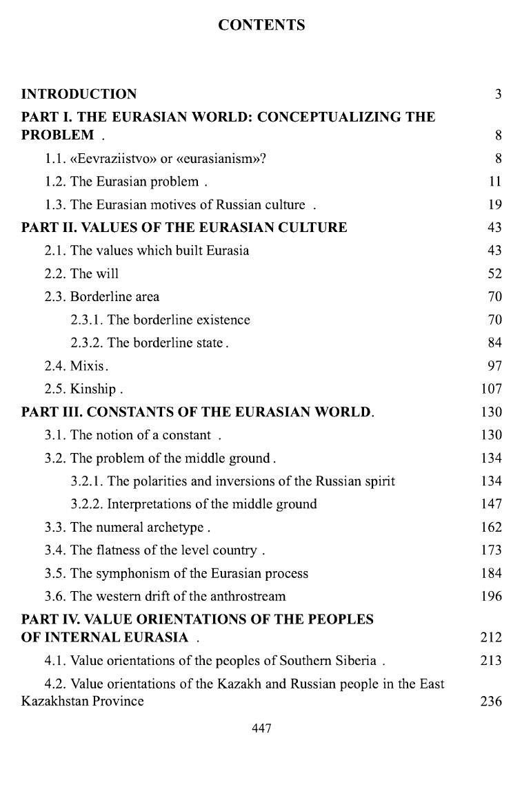 Евразийский мир: ценности, константы, самоорганизация : [монография / А. В. Иванов, Ю. В. Попков, Е. А. Тюгашев и др.] ; ответственный редактор Ю. В. Попков ; [рецензенты: В. П. Фофанов, Н. Н. Крадин, Е. А. Ерохина] ; Российская академия наук, Сибирское отделение, Институт философии и права. - Новосибирск : Нонпарель, 2010. - 449 с. ; 21 см. ISBN 978-5-93089-031-0. - 500 экз.