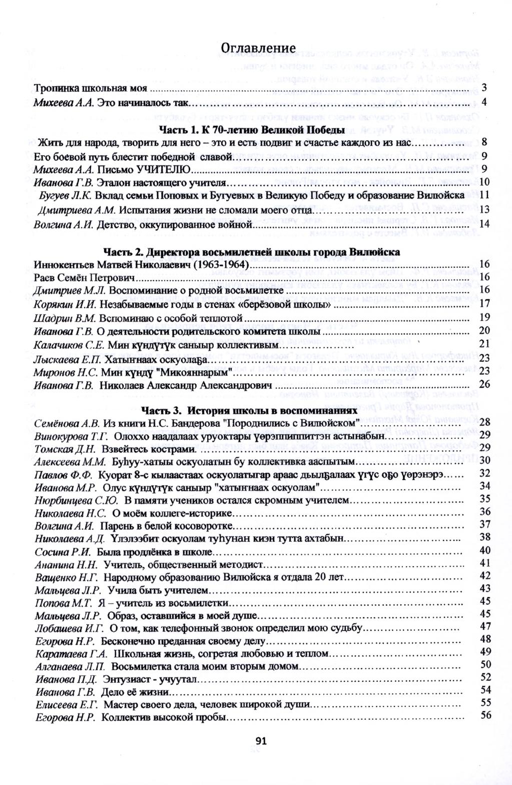 Ахтар-саныыр хатыҥнаах оскуолам : [Бүлүү куорат 8-с кылаастаах оскуолатын историятыттан (1963-1987) / составители: Г. В. Иванова, А. В. Семенова]. - Вилюйск : Полиграф, 2016. - 92 с., [4] л. ил., портр.