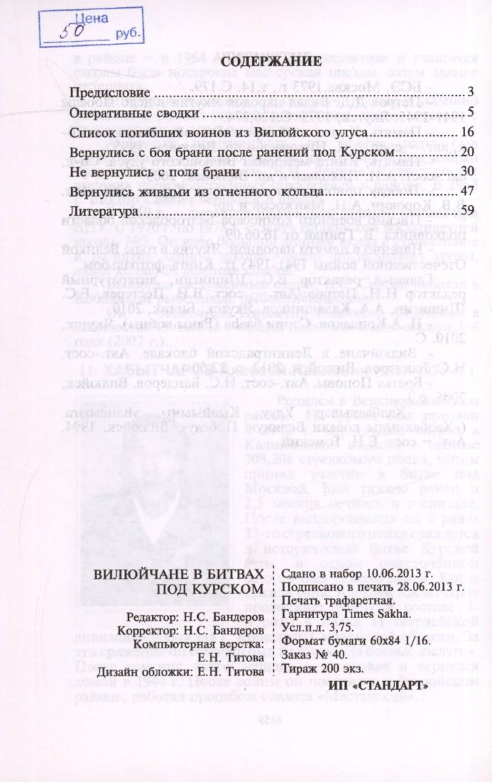 В книге отражены события войны на Курской земле зимой 1942 г. и летом 1943 г., где приняли участие наши земляки-вилюйчане
