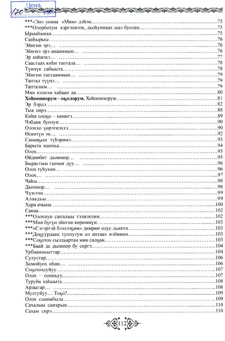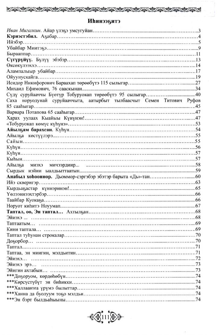 Это первая книга автора, в которой входят оды посвященные известным людям Якутии (А. Е. Кулаковскому, П. А. Ойунскому, Ис. Барахову, М. Е. Николаеву и др.) и описывает собственные взгляды на жизнь в стихотворной форме