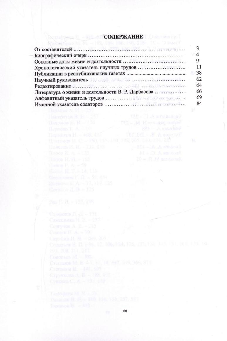 Василий Романович Дарбасов : доктор экономических наук, профессор, заслуженный деятель науки РС(Я), академик Академии Северного Форума и Петровской Академии наук и искусств : биобиблиографический указатель / Министерство образования и науки Российской Федерации ФГАОУ ВПО “Северо-Восточный федеральный университет им. М. К. Аммосова” Институт региональной экономики Севера, Центральная научная библиотека ЯНЦ СО РАН ; составитель А. С. Никитина ; библиографический очерк Е. Г. Егорова. - Якутск : Якутский научный центр СО РАН, 2013. - 88 с.