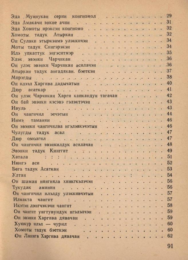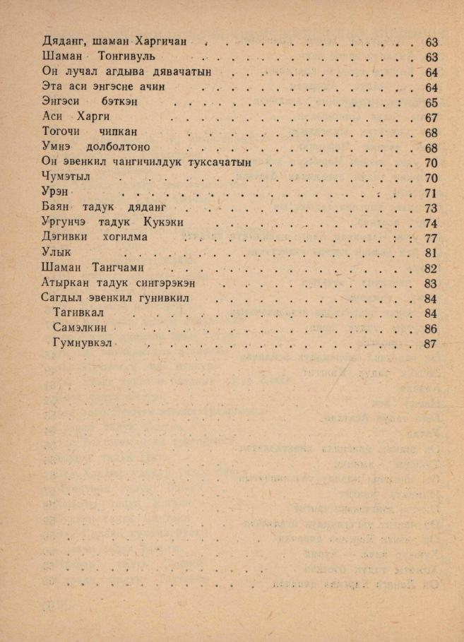 Илэ упкаттук энгэситмэр : эвэдыл тэгэдыл нимнгакар, улугрил, тагивкал, самэлкил, гунмувкэл / записал Николай Оёгир ; [редактор З. Н. Пикунова ; предисловие ван докучан тадук ичэтчэн А. Н. Немтушкин ; оневри В. В. Егоров]. - Красноярск : Книгады издательства, 1987. - 91, [1] с.