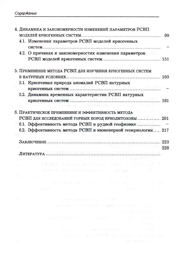 В книге дано описание разработанной методики экспериментальных лабораторных исследований временных характеристик ранней стадии вызванной поляризации (РСВП) в условиях высоких сопротивлений заземления, характерных для криогенных моделей горных пород. Произведена оценка влияния состава, строения и свойств горных пород криолитозоны на параметры РСВП. Приведены результаты натурных экспериментальных исследований амплитудных и временных характеристик РСВП мерзлых ионопроводящих пород. Доказана возможность использования метода РСВП при решении фундаментальных и прикладных задач общей и инженерной геокриологии. Впервые описаны признаки аномалий ВП криогенной природы. Расширена область применения метода в рудной геофизике и обоснованы основные направления развития метода при решении геокриологических проблем. Для специалистов и студентов геолого-геофизической, инженерно-геологической и смежных специальностей. Книга может быть использована и в качестве учебного пособия для студентов и магистрантов специальностей 080400, 080300, 650200