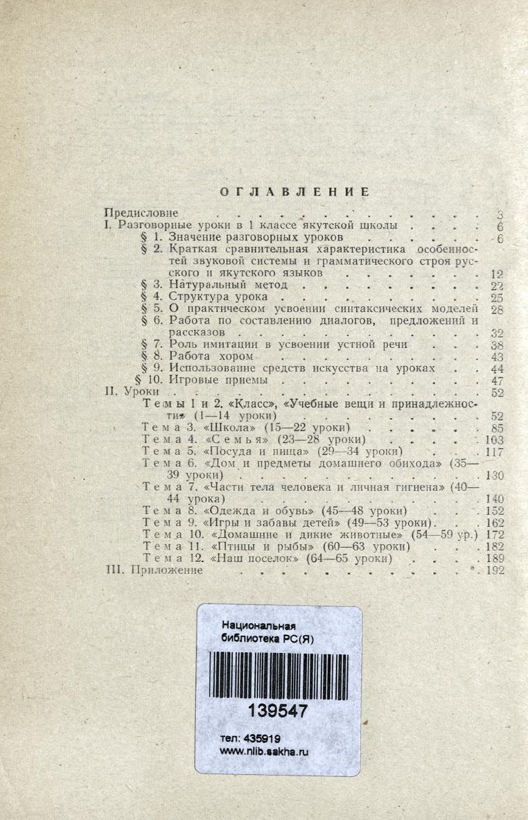 Разговорные уроки по русскому языку для первого класса якутской школы : методическое пособие для учителей / Н. Е. Самсонова [и др.]. - Изд. 2-е. - Якутск : Якутское книжное изд-во, 1973. - 222, [2] с.