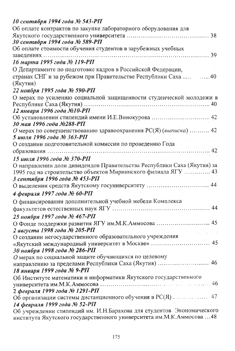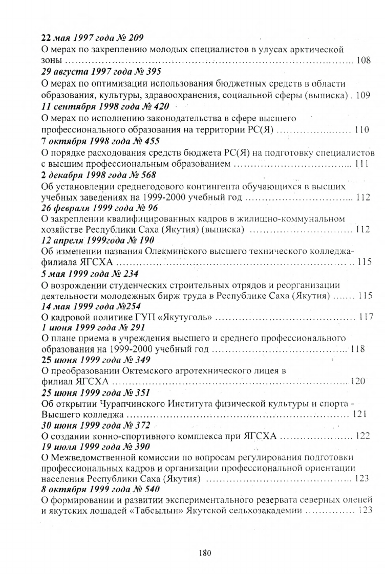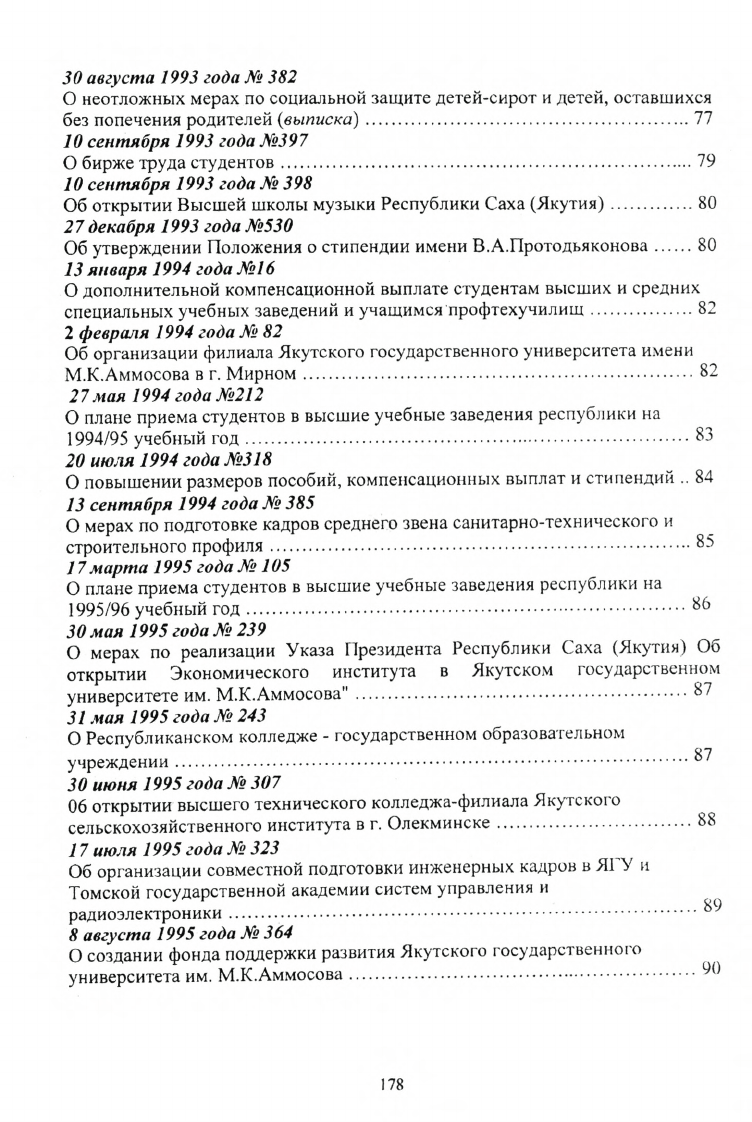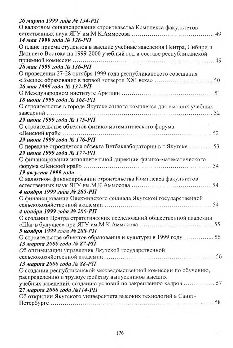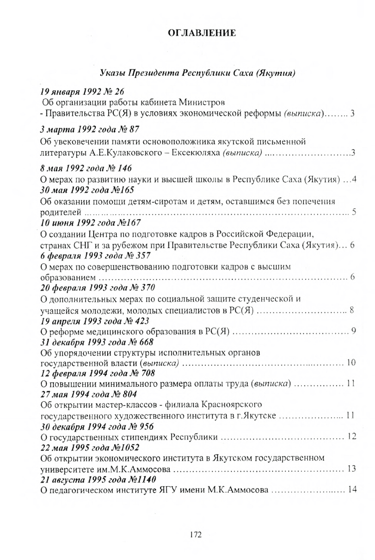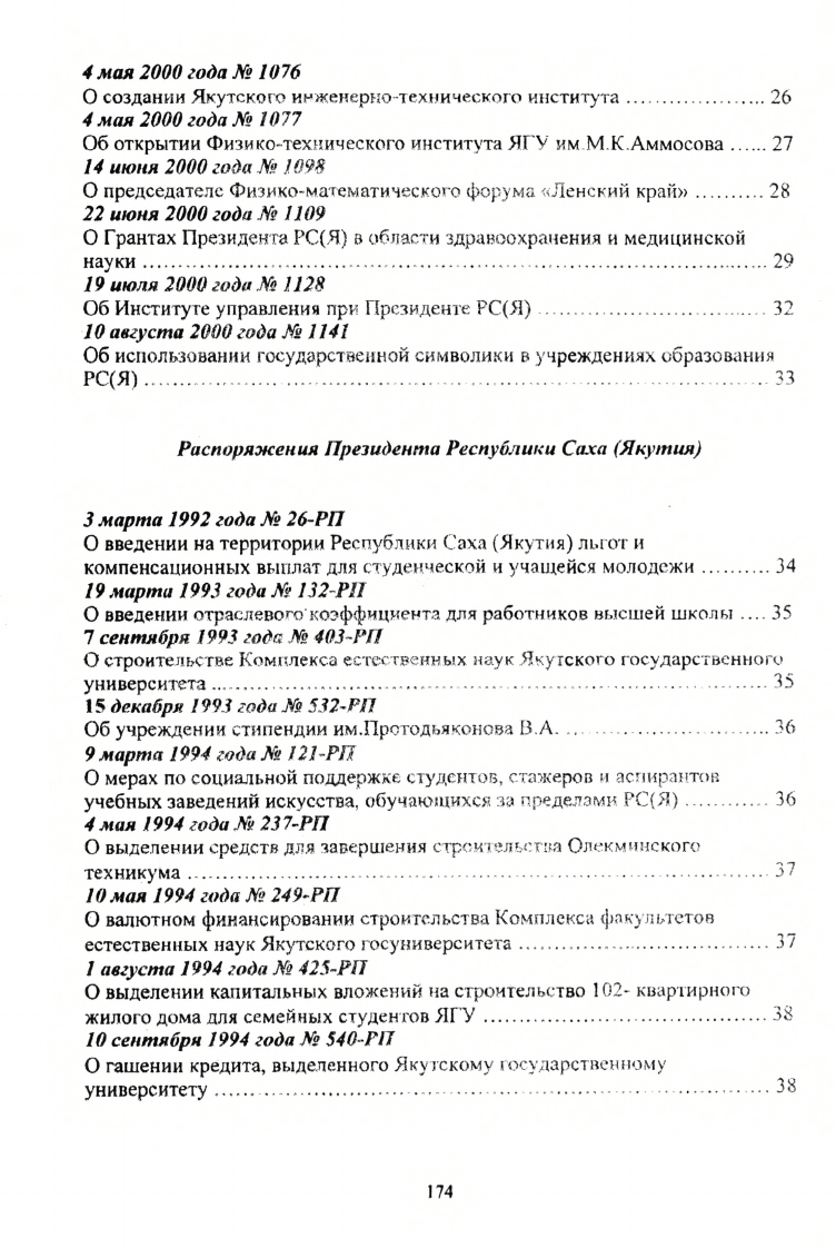 Указы и распоряжения Президента Республики Саха (Якутия), постановления и распоряжения Правительства Республики Саха (Якутия) в области высшей школы 1992-2000 г.г.