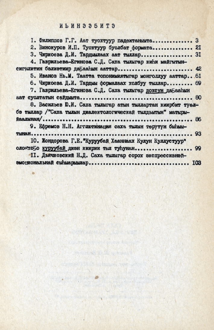 Саха тыла: лексика, грамматика : научнай үлэлэр хомуурунньуктара / [отв. ред Н. Д. Дьячковский ; ред. Ю. И. Васильев ; рец.: Попов Г. В., Оконешников Е. И.] ; Рос. Федерация үрдүк үөрэххэ гос. ком., М.К. Аммосов аатынан Саха гос. ун-та. - Дьокуускай : изд-во ЯГУ, 1993. - 136, [1] с.