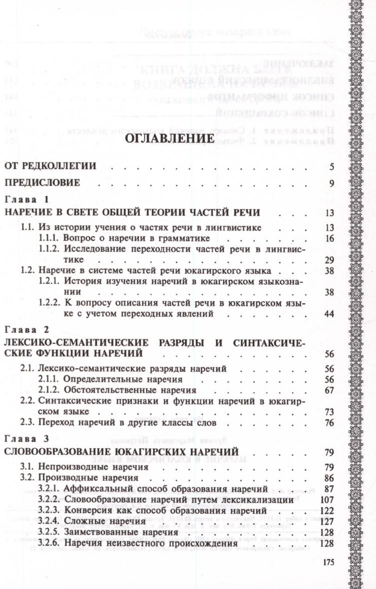 Монография посвящена комплексному описанию наречия на материале двух сохранившихся диалектов юкагирского языка. В работе наречие впервые рассматривается с учетом функциональных трансформаций в системе частей речи современного юкагирского языка; определены его лексико-семантические разряды, синтаксические функции, словообразование. Подробно описаны способы образования наречий: аффиксальный, лексикализации и конверсии. Основными источниками послужили фольклорные тексты и образцы живой речи юкагиров, локально проживающих в Республике Саха (Якутия): с. Андрюшкино Нижнеколымского и с. Нелемное Верхневилюйского улусов. Приложенные к работе фольклорные тексты и словарь наречий по колымскому диалекту имеют самостоятельную научную и практическую ценность