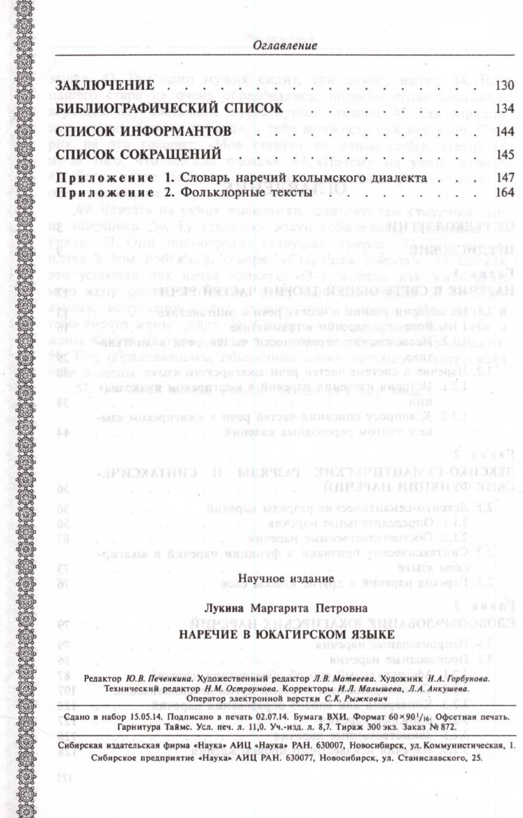 Наречие в юкагирском языке / М. П. Лукина ; ответственный редактор доктор филологических наук Г. Н. Курилов ; Российская академия наук, Сибирское отделение, Институт гуманитарных исследований и проблем малочисленных народов Севера. - Новосибирск : Наука, 2014. - 173, [3] с.