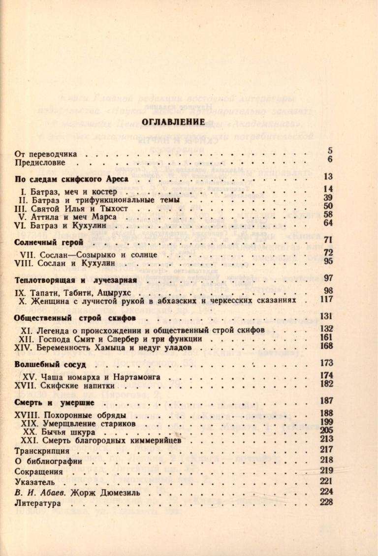 Скифы и нарты / Ж. Дюмезиль ; [под редакцией Б. А. Калоева; сокращенный перевод с французского А. З. Алмазовой ; послесловие В. И. Абаева]. - Москва : Наука, Главная редакция восточной литературы, 1990. - 231 с.