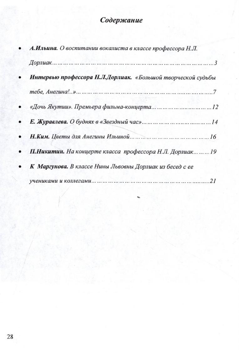 Нина Львовна Дорлиак : [воспоминания] / А. Е. Ильина-Дмитриева ; Высшая школа музыки Республики Саха (Якутия), Кафедра сольного пения и оперной подготовки. - Якутск : [б. и.], 2008. - 28 с.
