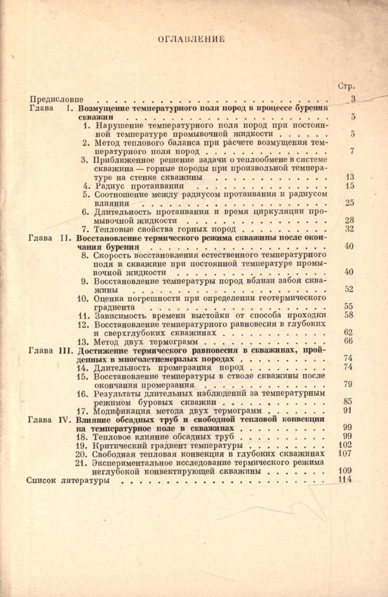 Изложены результаты экспериментальных и теоретических исследований теплового взаимодействия между скважиной и окружающими горными породами при бурении скважин и после окончания его. Исследованы особенности процессов теплообмена между скважиной и мерзлыми породами, связанные с учетом фазовых переходов (вода — лед) в прилегающем к скважине слое пород. Изложен метод двух термограмм, позволяющий определить естественную температуру пород при недостаточном времени выстаивания скважины. Дана количественная оценка роли конвекции жидкости (газа) и обсадных труб в температурном режиме скважин. Книга предназначена для специалистов, работающих в области геофизики, бурения и эксплуатации нефтяных и газовых скважин