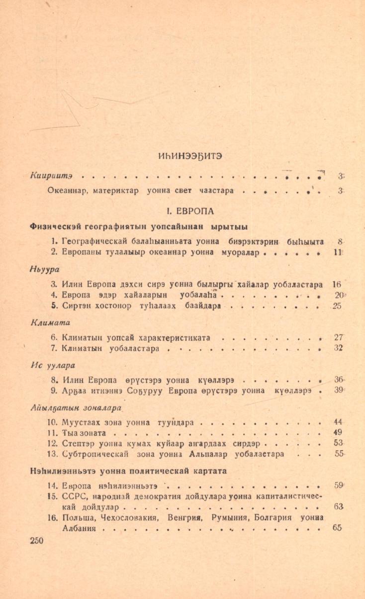 Свет чаастарын физическэй географията : сэттэ кылаастаах уонна орто оскуола 6-с кылааһыгар үөрэнэр кинигэ / П. Н. Счастнев, П. Г. Терехов ; Г. Н. Егоров тылб. - Нууччалыы 2-с таһаарыыттан тылб. - Якутскай : Саха сиринээҕи кинигэ изд-вота, 1957. - 248, [4] с.