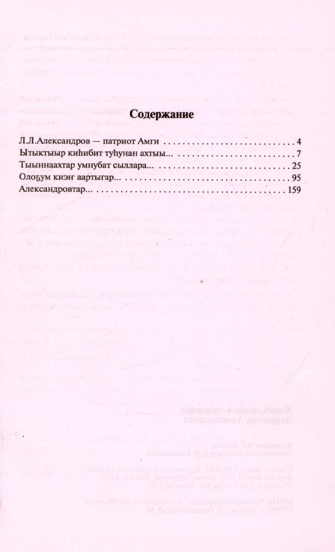 Жизнь солдата-гвардейца Лаврентия Александрова / [составители: Л. Л. Александров, В. Л. Александров ; автор предисловия В. Федоров, краевед-историк]. - Якутск : Сахаполиграфиздат, 2001. - 189, [2] с.