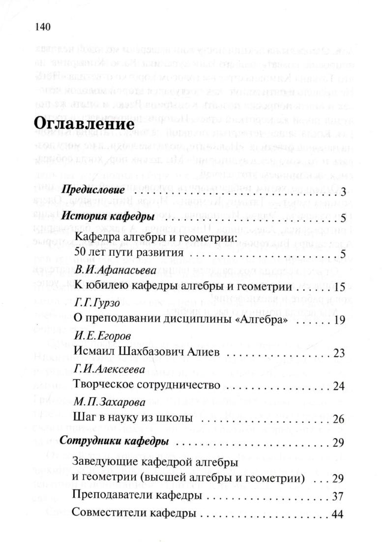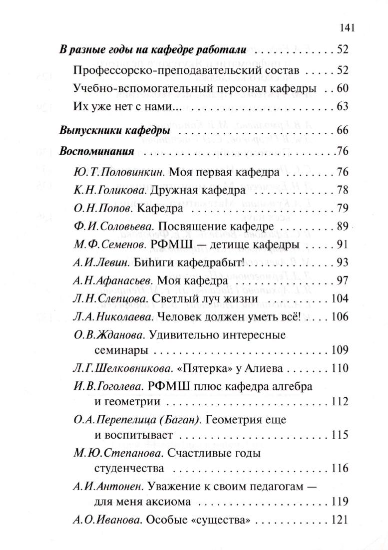 Книга содержит сведения из истории кафедры алгебры и геометрии Института математики и информатики Северо-Восточного федерального университета им. М. К. Аммосова. В ней освещены традиции кафедры, достижения ее преподавателей и выпускников