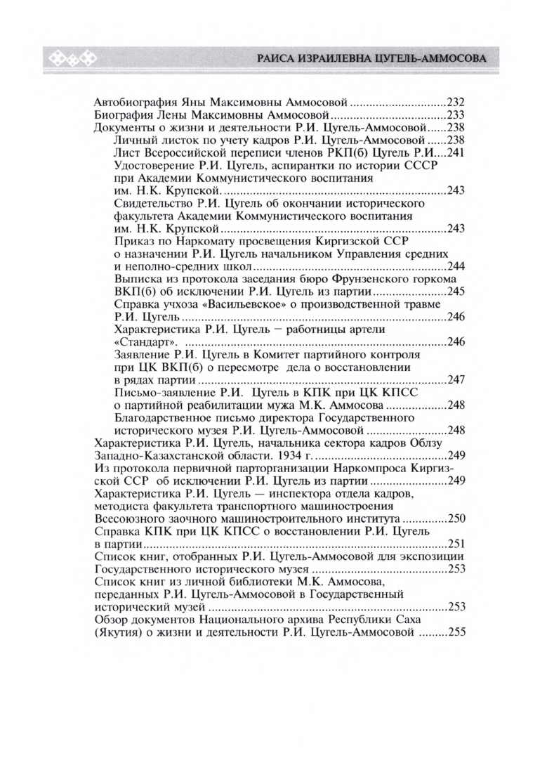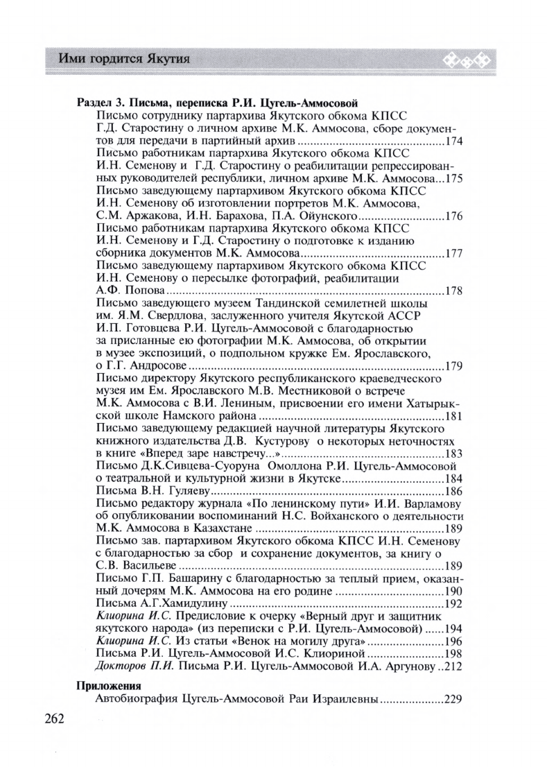 Раиса Израилевна Цугель-Аммосова / [составители: Л. М. Аммосова, Н. Н. Малышева, В. К. Ефимова ; ответственный редактор А. Н. Жирков ; автор предисловия А. В. Власов]. - Якутск : Бичик, 2012. - 262, [1] с., [12] л. ил. : ил. ; 21 см. - (Ими гордится Якутия)