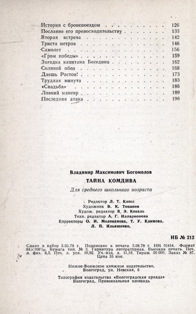 Тайна комдива : рассказы о гражданской войне : [для среднего школьного возраста] / В. Богомолов ; [художник В. К. Топанов]. - 2-е изд., испр. и доп. - Волгоград : Нижне-Волжское книжное издательство, 1978. - 207 с.