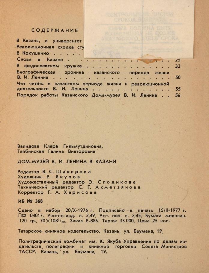 Дом-музей В. И. Ленина в Казани : [путеводитель] / К. Г. Валидова, Г. В. Тайбинская. - 2-е изд., доп. - Казань : Татарское книжное издательство, 1977. - 57 с.